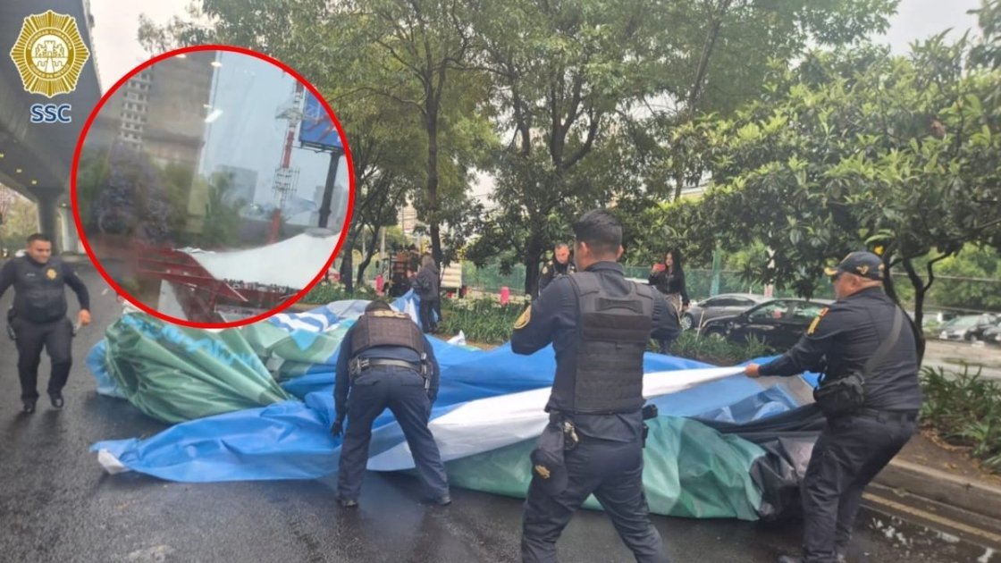 Los policías de la SSC realizaron cortes a la circulación en el Periférico Sur y en la carretera Picacho-Ajusco mientras llevaban a cabo las maniobras para retirar la lona. Con precaución, los oficiales descendieron la estructura desde el segundo piso, la enrollaron y la colocaron sobre el camellón central, liberando parcialmente la vía.