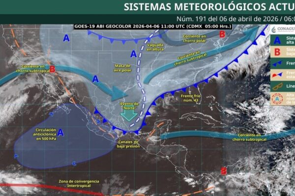 El frente frío 43 provocará lluvias intensas y descenso de temperatura en el sureste de México, afectando a varios estados con condiciones de inestabilidad.