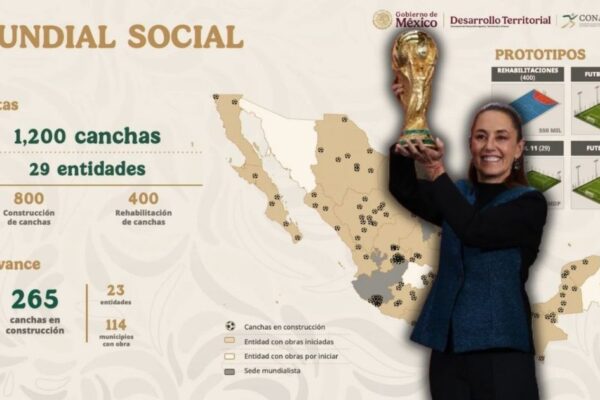 Sheinbaum anuncia 1,200 canchas en 29 estados para el Mundial 2026, fomentando el deporte y revitalizando espacios públicos.