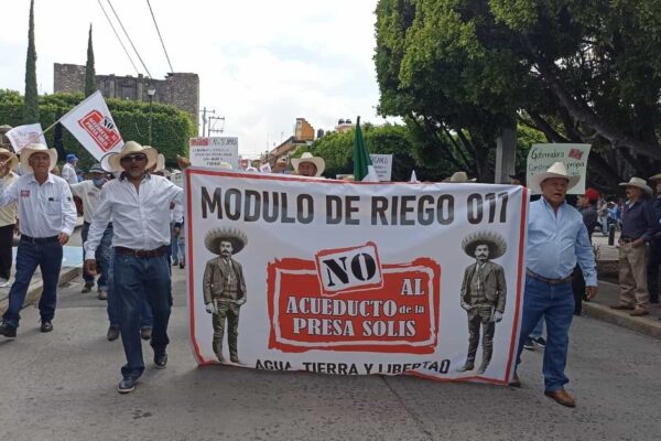 Agricultores de Acámbaro protestan contra el Acueducto Solís por temor a la escasez de agua para el riego agrícola.