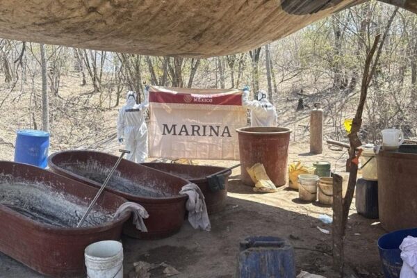 La Semar desmanteló un laboratorio de metanfetaminas en Mocorito, Sinaloa, con 600 kg de droga y precursores, afectando al crimen organizado.