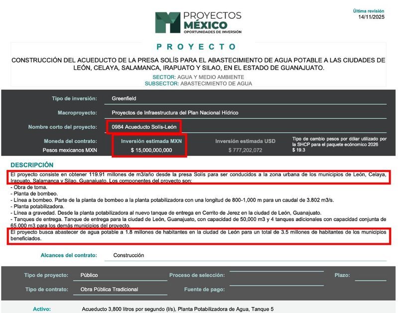 La obra del Acueducto Solís-León también contempla la modernización y tecnificación del Distrito 011 para mejorar la eficiencia hídrica y aprovechar volúmenes de agua que actualmente se pierden por filtraciones e ineficiencias en el sistema de riego. Este enfoque busca asegurar que el agua disponible se utilice de manera más eficiente sin afectar a otras regiones.