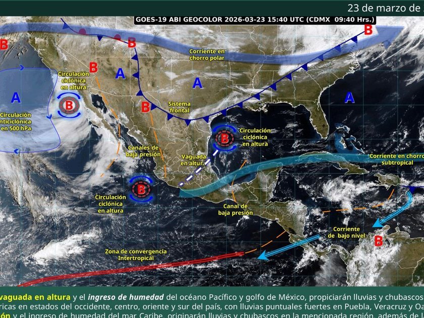 Un canal de baja presión en el sureste del país, junto con la humedad del mar Caribe, provocará lluvias en Oaxaca, Tabasco, Chiapas, Campeche y Quintana Roo. En paralelo, un nuevo frente frío se aproxima desde el norte, trayendo consigo vientos de hasta 60 km/h en Coahuila, Nuevo León y Tamaulipas.